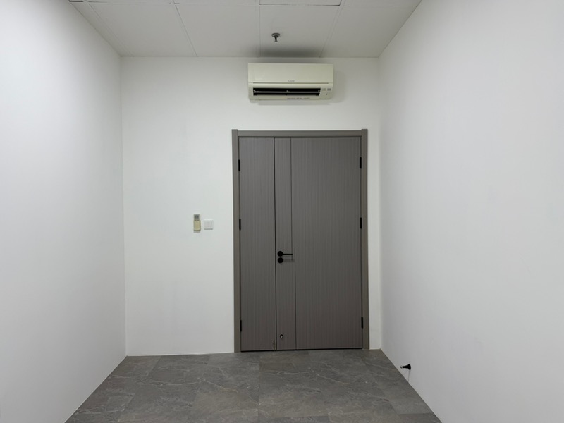 2. Newly fitted with a brand-new door, lighting, and grey modern vinyl floor.